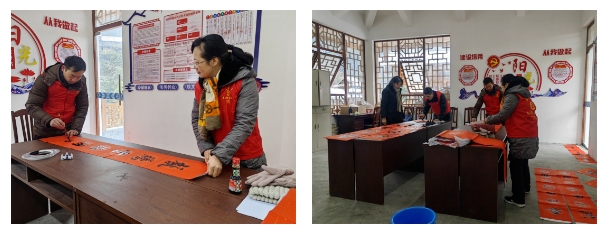 文旅集團“國企工匠”文化志愿服務隊員向村民贈送新春“?!弊?,還為培秀村脫貧戶、監(jiān)測戶贈送了毛毯等新春慰問品,祝福大家新年快樂!