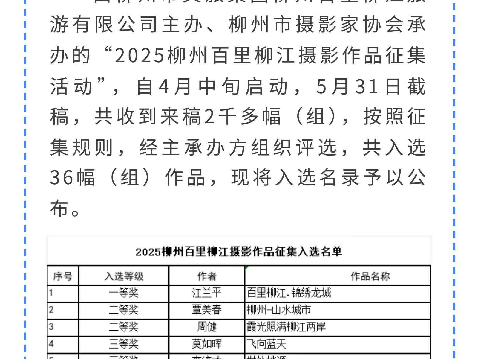定格最美柳江!首屆“百里柳江”攝影大賽獲獎作品出爐! 發(fā)布時間:2025年07月16日 10時來源:本站原創(chuàng)瀏覽:124 人次