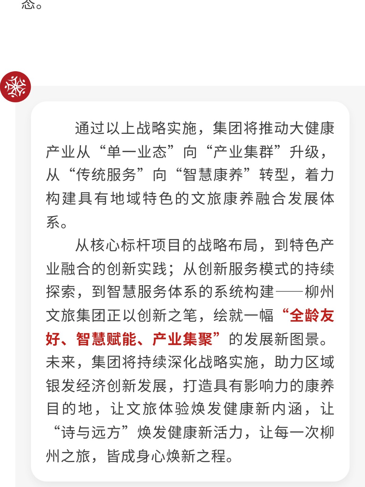 柳州文旅集團(tuán)推動文旅康養(yǎng)深度融合,培育大健康產(chǎn)業(yè)集群新優(yōu)勢 發(fā)布時間:2025年09月05日 22時來源:本站原創(chuàng)瀏覽:153 人次