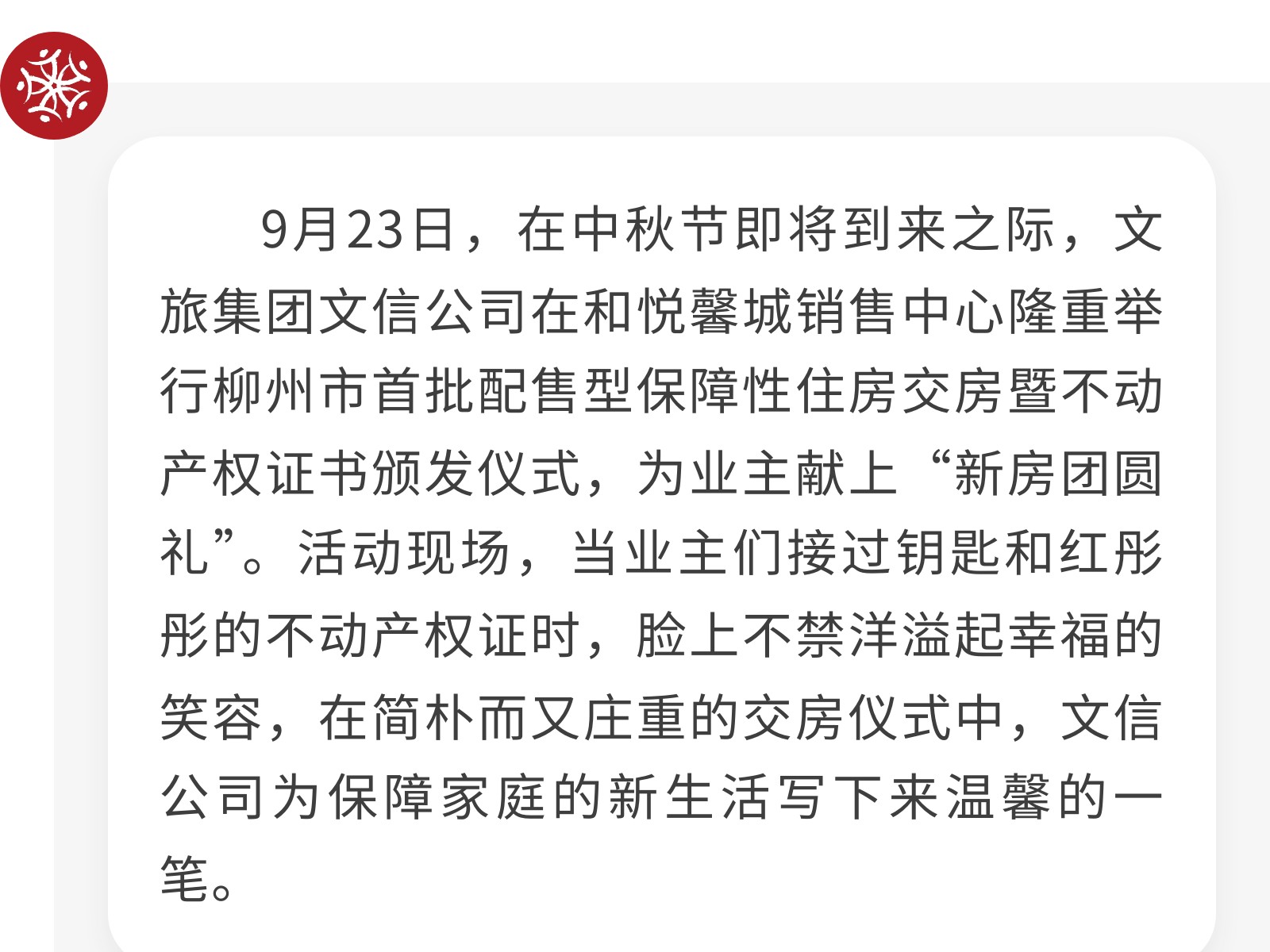 我市首批配售型保障性住房實現(xiàn)“交房即交證” 發(fā)布時間:2025年09月27日 10時來源:本站原創(chuàng)瀏覽:88 人次