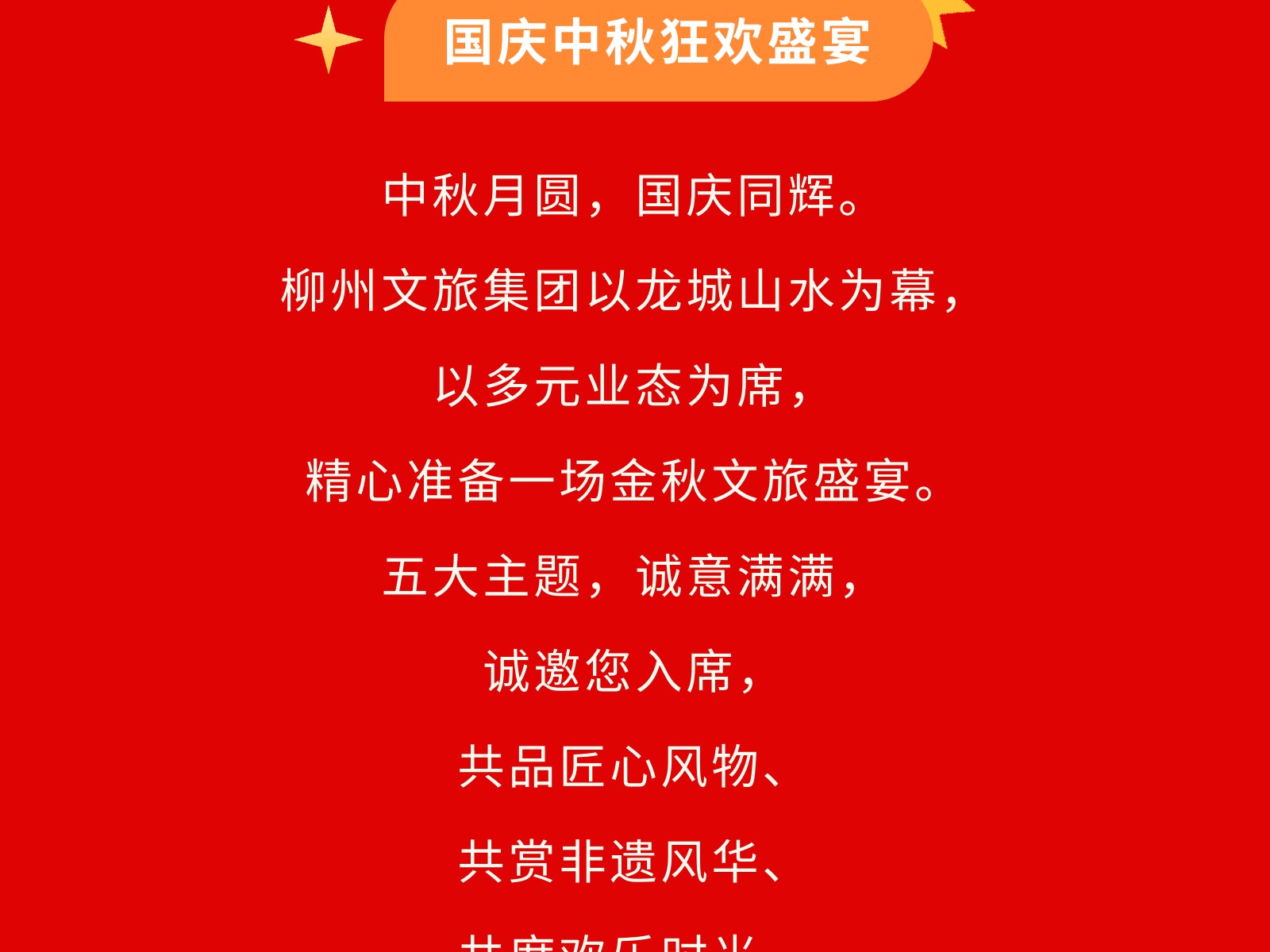 【雙節(jié)同慶,盛情以待】柳州文旅集團(tuán)邀您共赴一場金秋文旅盛宴 發(fā)布時間:2025年09月30日 16時來源:本站原創(chuàng)瀏覽:74 人次