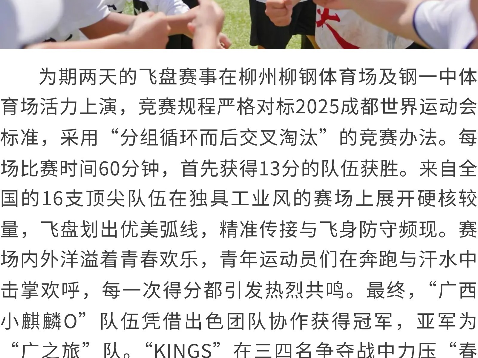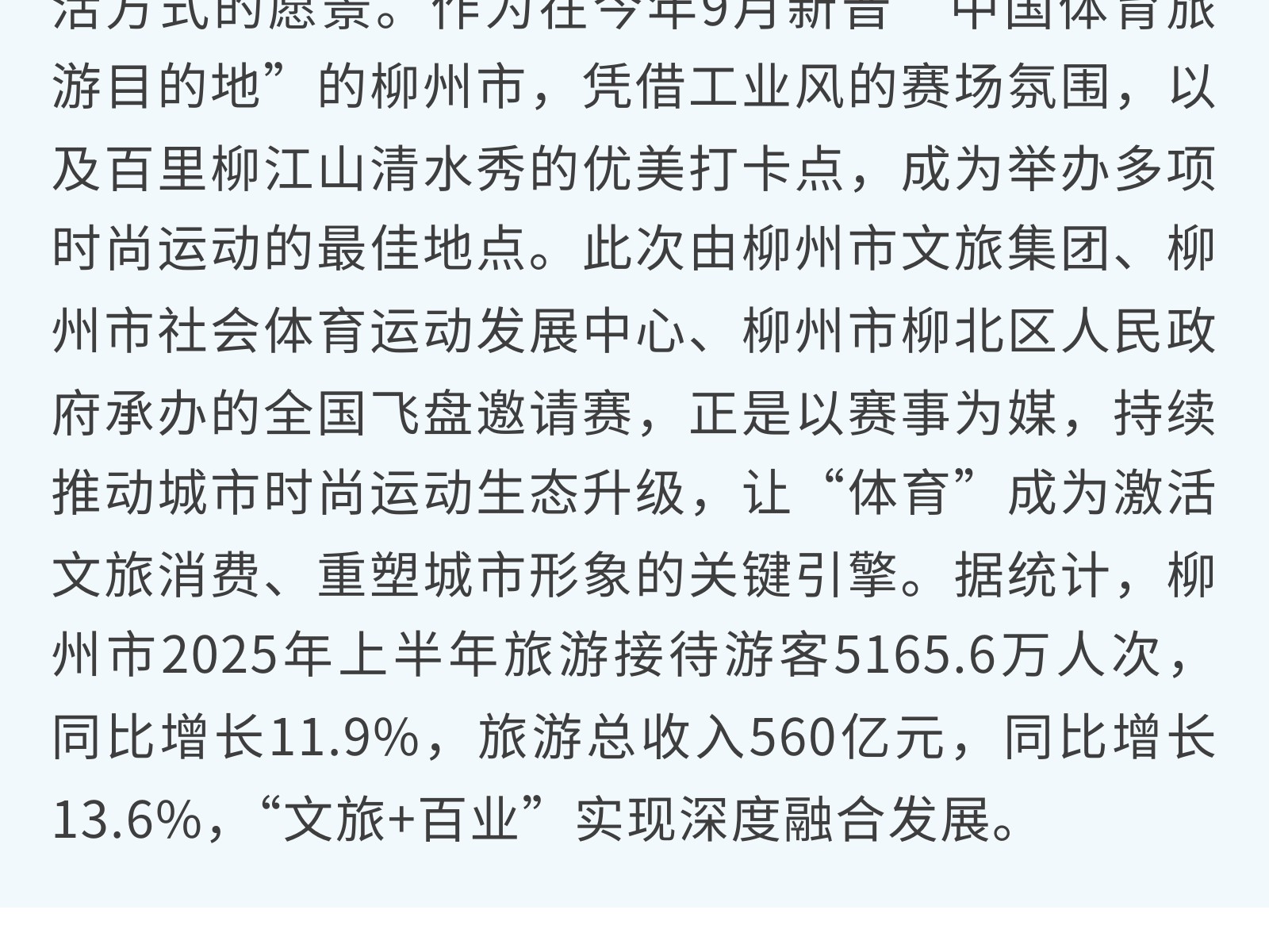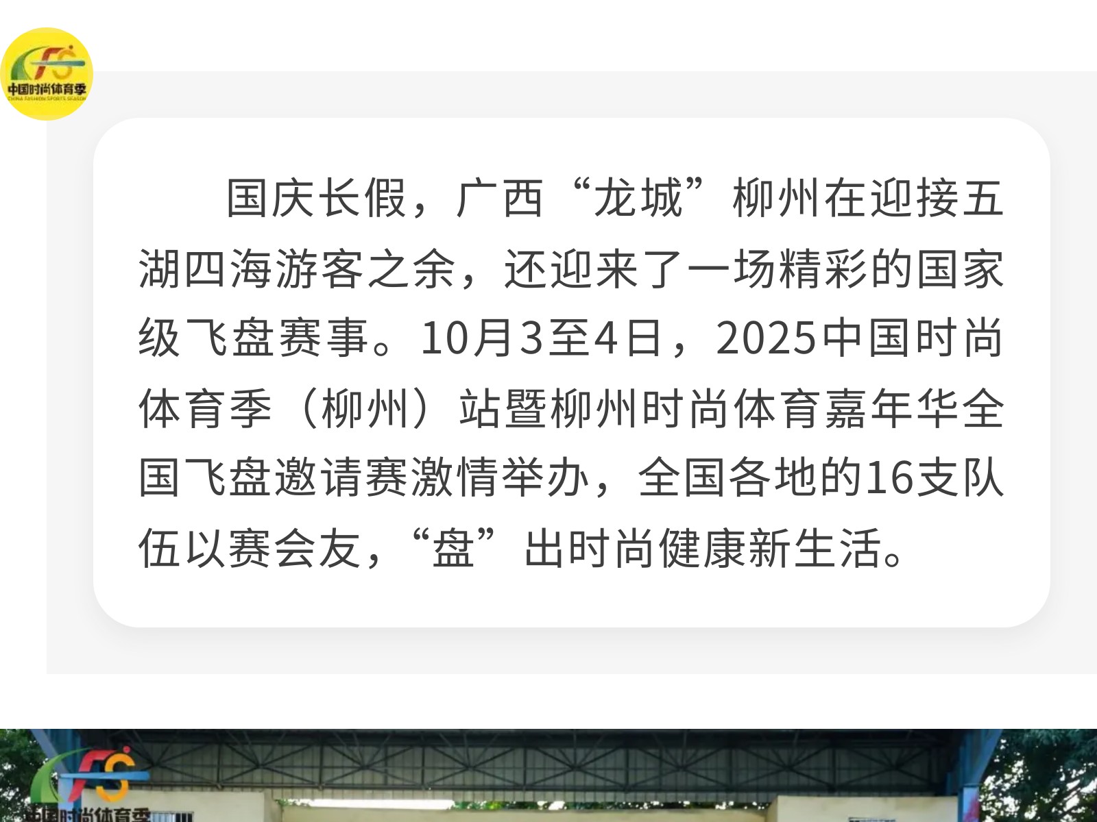 “盤”出時(shí)尚健康新生活,廣西柳州承辦國(guó)家級(jí)飛盤賽 發(fā)布時(shí)間:2025年10月05日 17時(shí)來(lái)源:本站原創(chuàng)瀏覽:140 人次