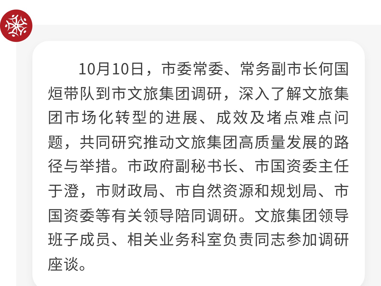 市委常委、常務副市長何國烜到市文旅集團調研 發(fā)布時間:2025年10月11日 15時來源:本站原創(chuàng)瀏覽:53 人次