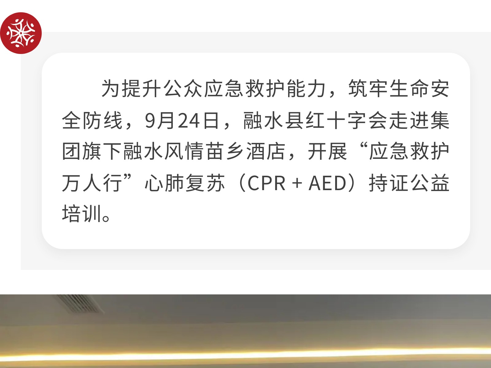 融水縣紅十字會(huì)到集團(tuán)旗下融水風(fēng)苗鄉(xiāng)酒店開展“應(yīng)急救護(hù)萬人行”心肺復(fù)蘇持證公益培訓(xùn) 發(fā)布時(shí)間:2025年10月14日 15時(shí)來源:本站原創(chuàng)瀏覽:48 人次