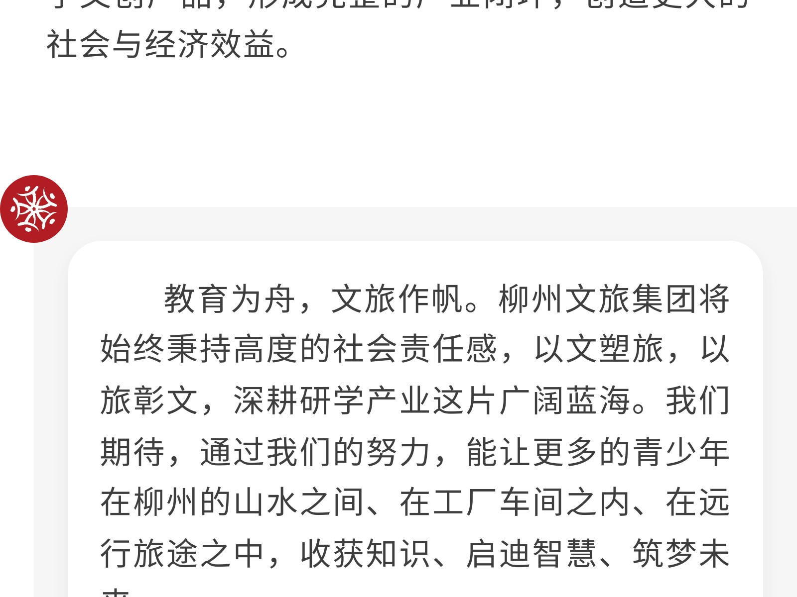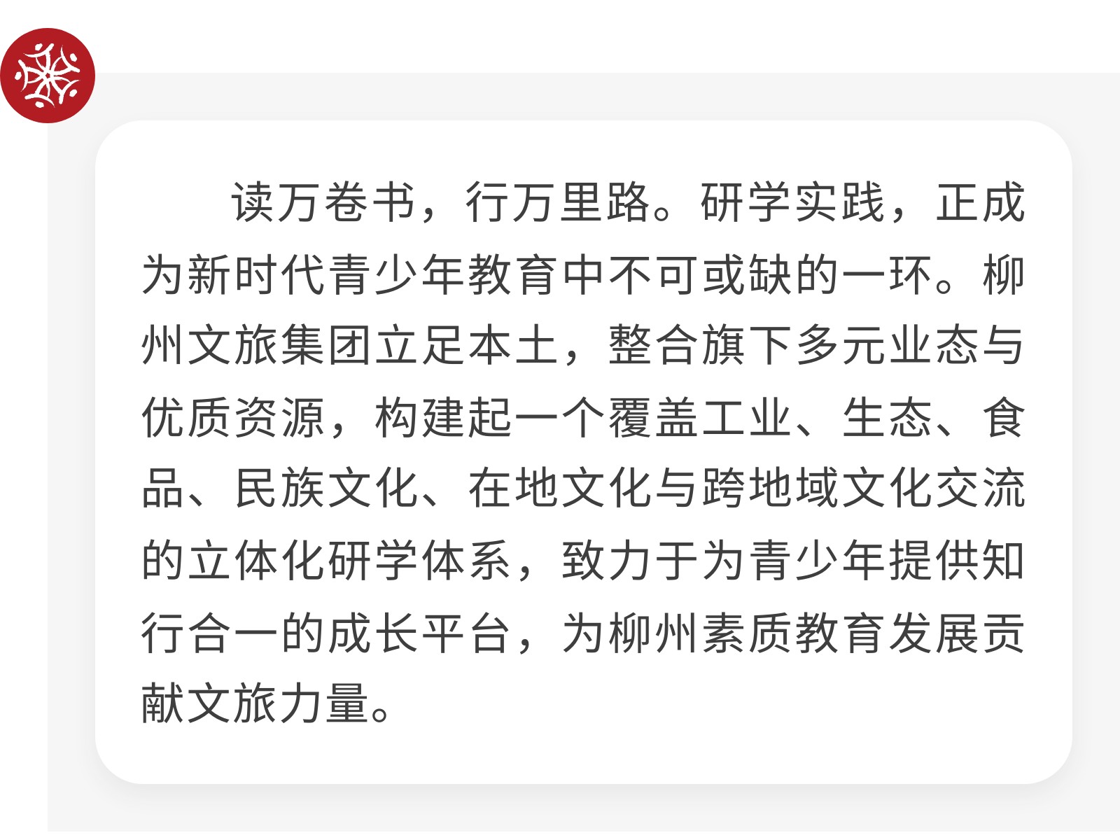 【鑄就研學(xué)新高地,賦能成長新未來】柳州文旅集團研學(xué)產(chǎn)業(yè)實踐與展望 發(fā)布時間:2025年10月15日 09時來源:本站原創(chuàng)瀏覽:100 人次