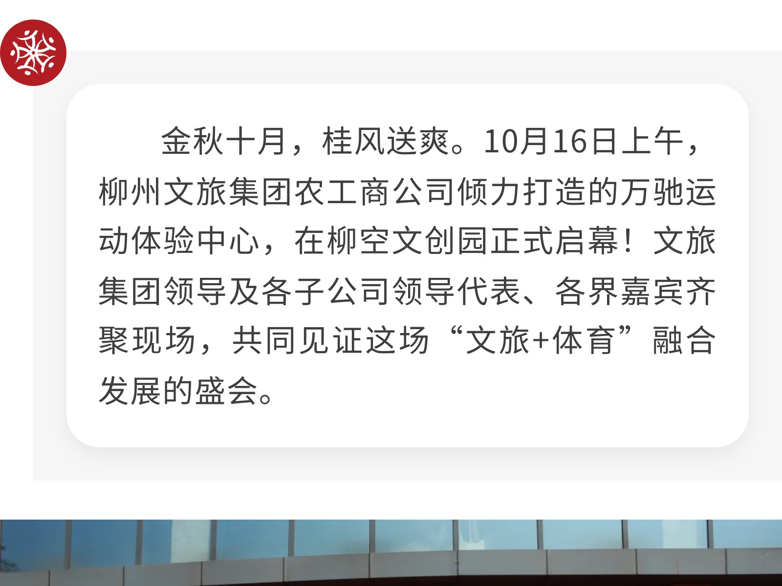 【萬序亨通,馳志青云】柳空文創(chuàng)園萬馳運動體驗中心啟幕儀式圓滿舉行! 發(fā)布時間:2025年10月16日 10時來源:本站原創(chuàng)瀏覽:54 人次