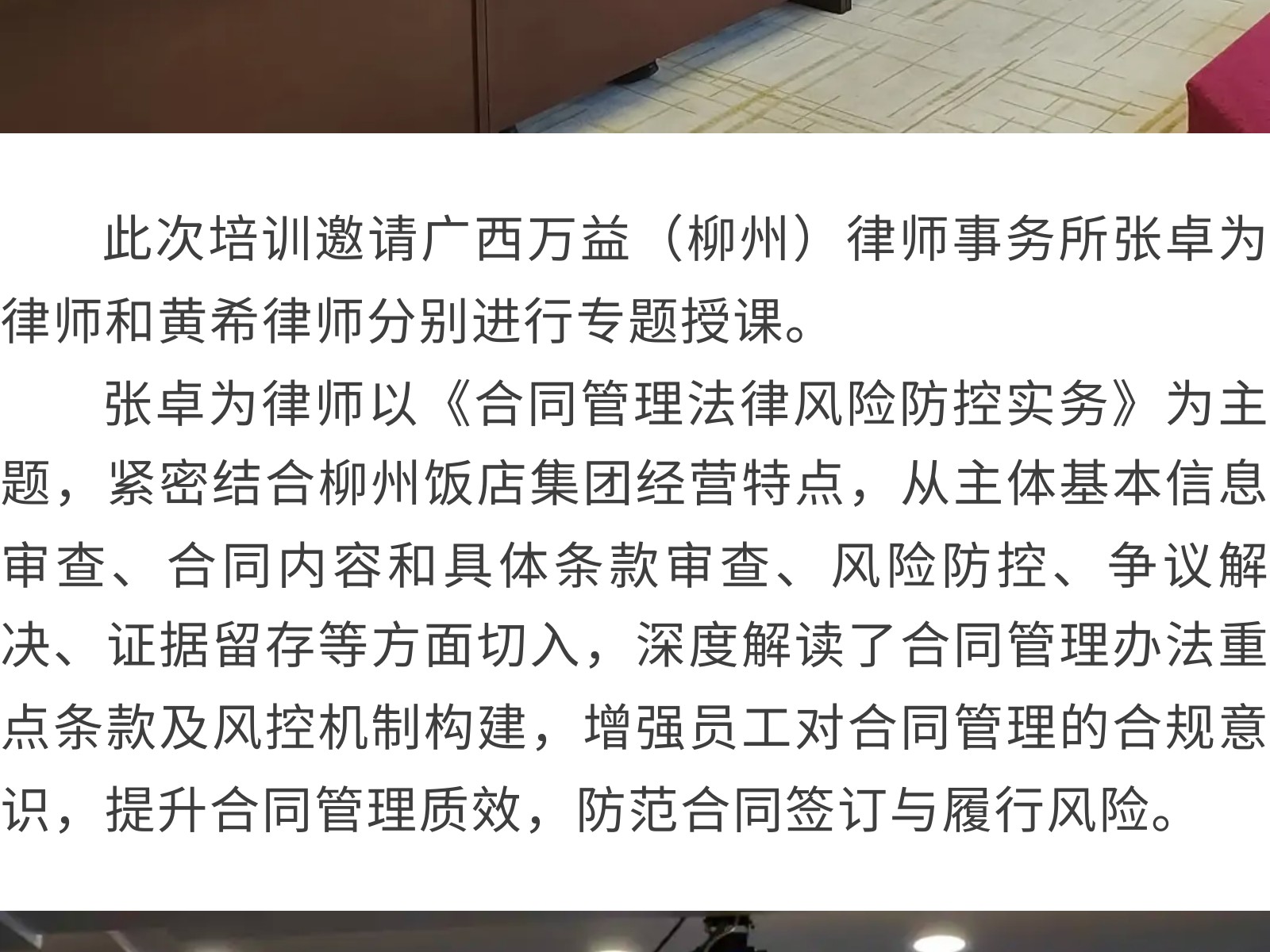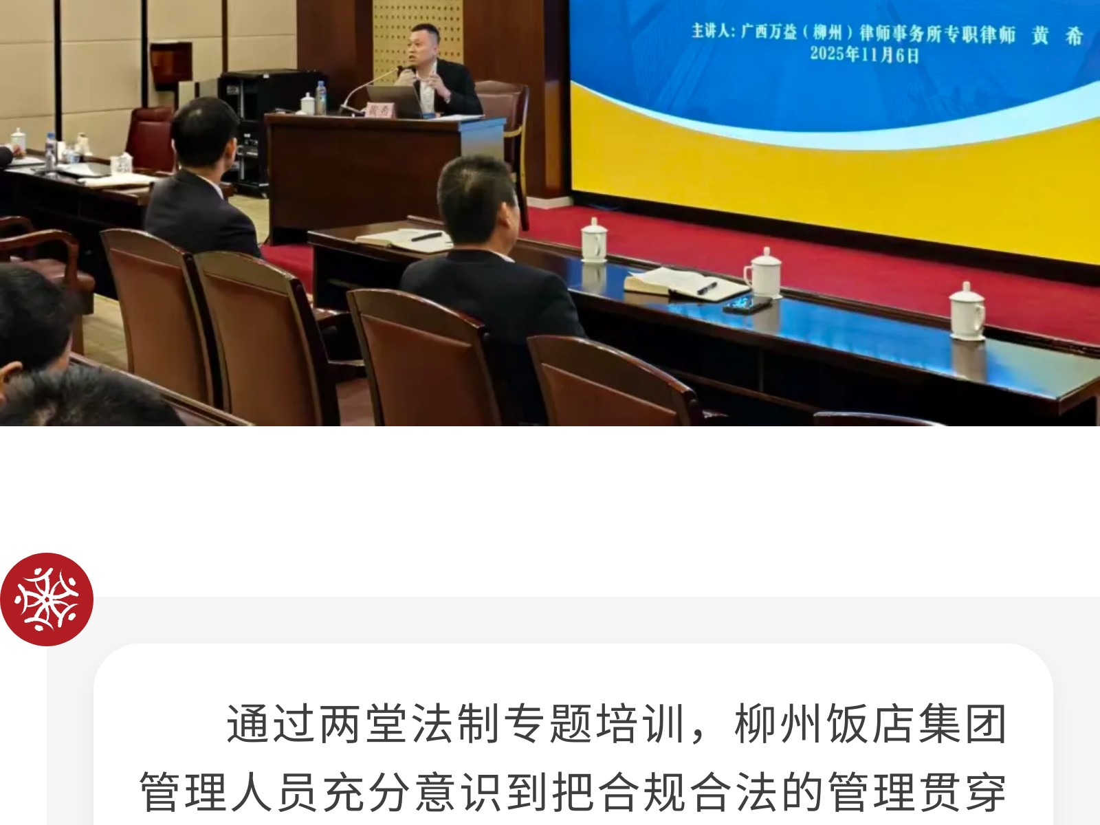 【風(fēng)起于青萍之末,浪成于微瀾之間】柳州飯店集團(tuán)開展法律專題培訓(xùn) 發(fā)布時間:2025年11月13日 15時來源:本站原創(chuàng)瀏覽:36 人次