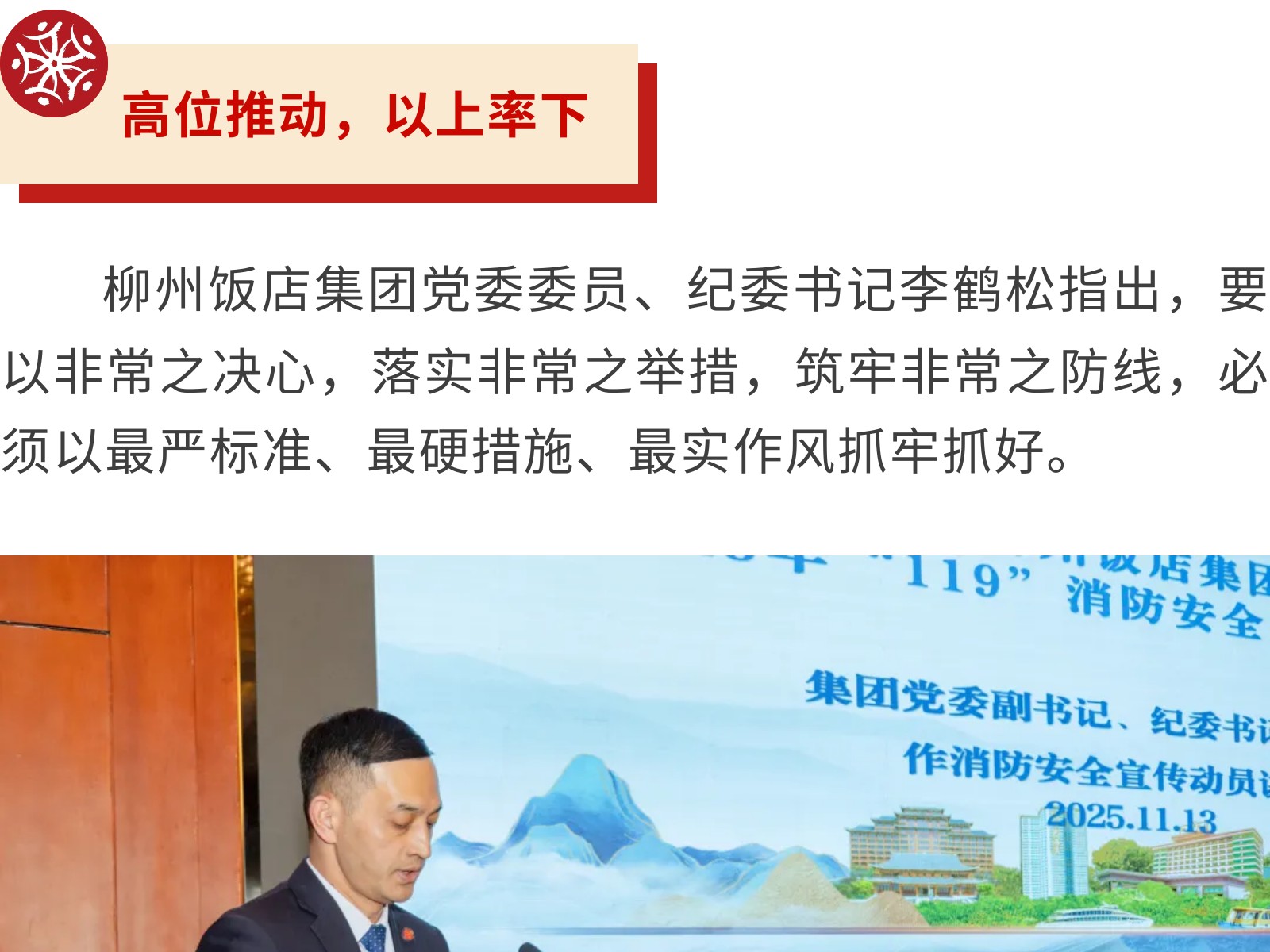【全民消防 生命至上】文旅集團柳州飯店這樣“硬核”守護您! 發(fā)布時間:2025年11月19日 15時來源:本站原創(chuàng)瀏覽:30 人次