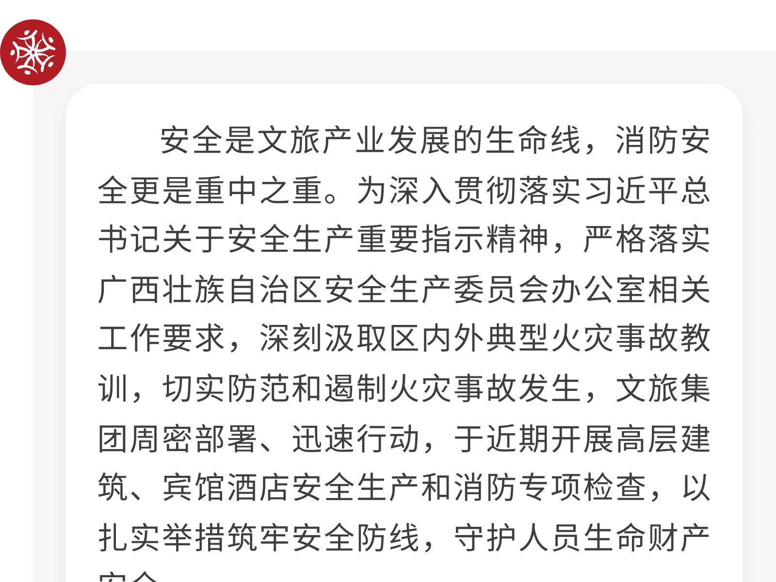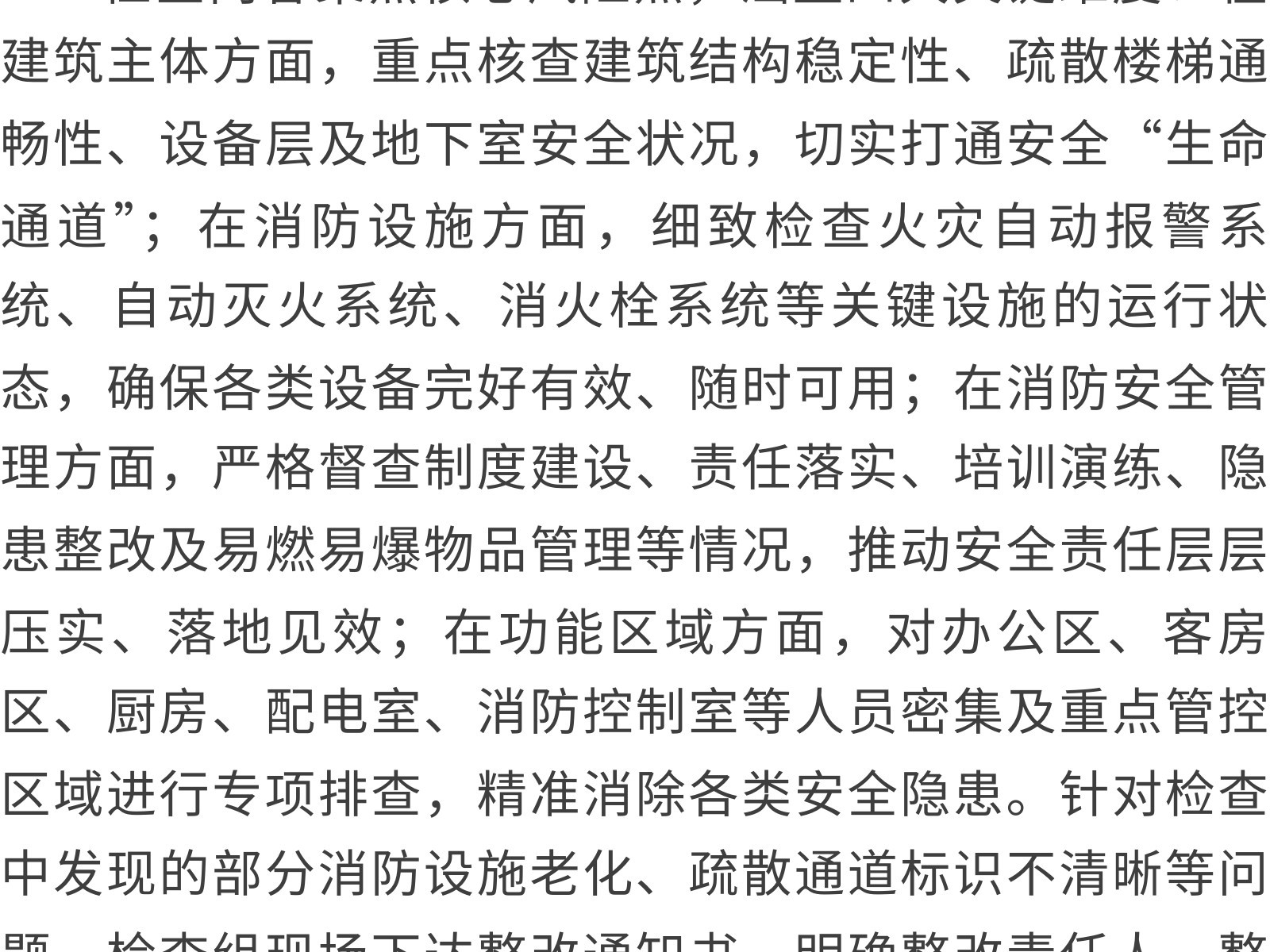 【繃緊安全之弦 筑牢防護(hù)屏障】文旅集團(tuán)開展高層建筑及賓館酒店安全生產(chǎn)消防專項(xiàng)檢查 發(fā)布時間:2025年12月11日 10時來源:本站原創(chuàng)瀏覽:26 人次