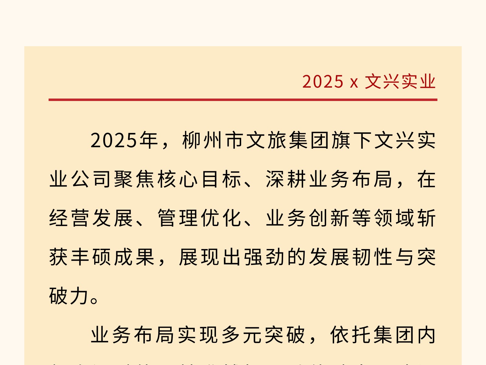 【文旅聚勢2025】多元創(chuàng)新拓新局,實干賦能高質(zhì)量發(fā)展——文興實業(yè)激活發(fā)展新動能 發(fā)布時間:2025年12月24日 10時來源:本站原創(chuàng)瀏覽:35 人次