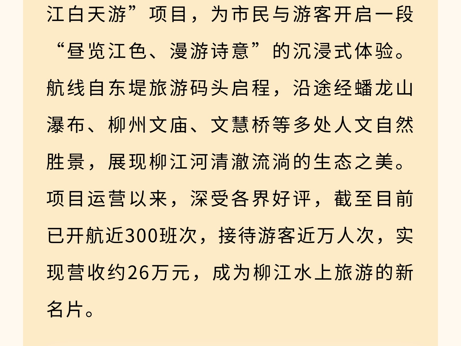 【文旅聚勢2025】碧水映城,風(fēng)帆勁起——百里柳江公司書寫文旅融合新篇章 發(fā)布時間:2025年12月25日 10時來源:本站原創(chuàng)瀏覽:35 人次