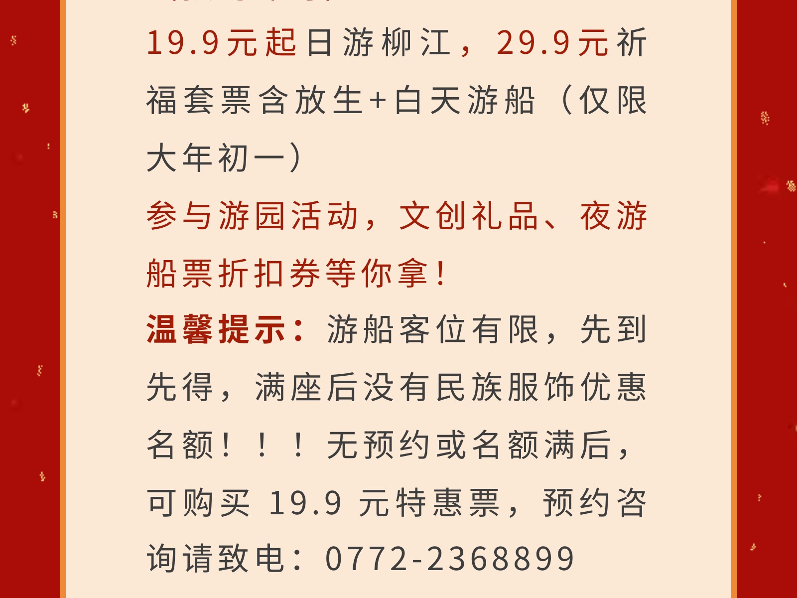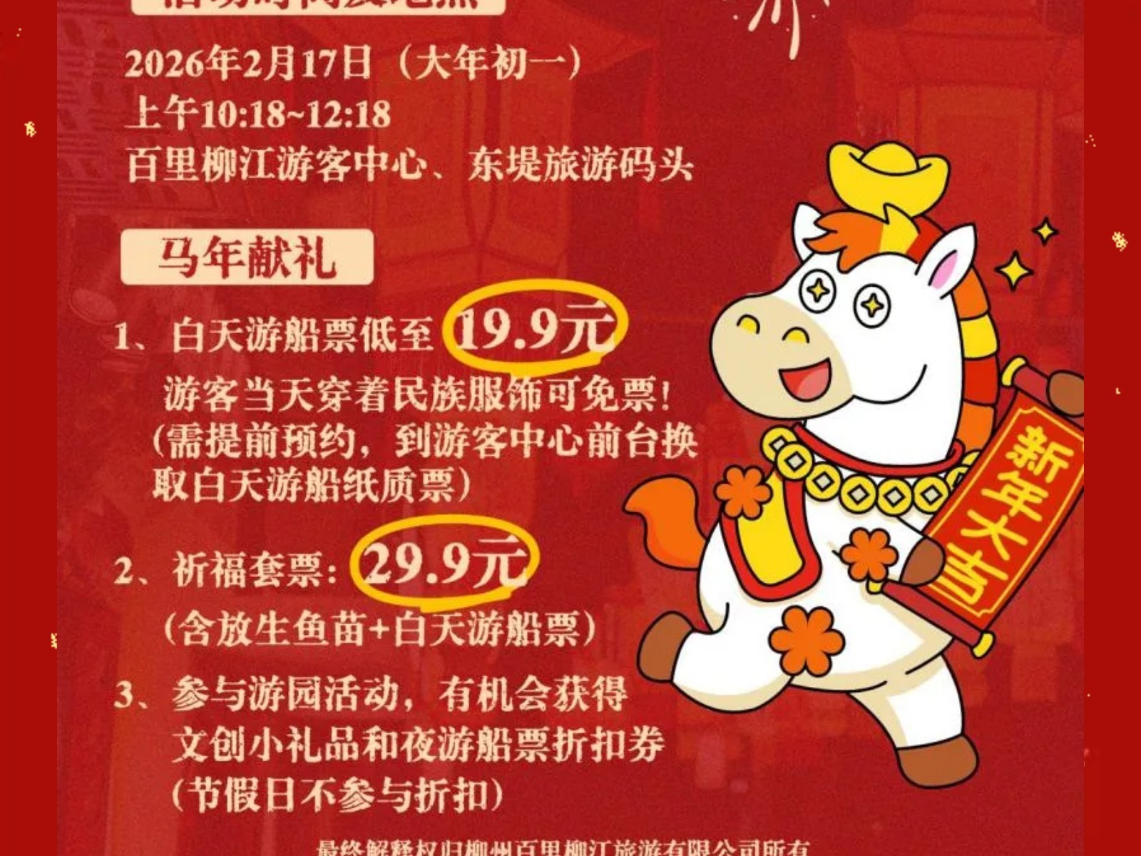 穿民族服飾=免船票!解鎖百里柳江景區(qū)大年初一“薅羊毛”的正確姿勢! 發(fā)布時間:2026年01月26日 12時來源:本站原創(chuàng)瀏覽:19 人次
