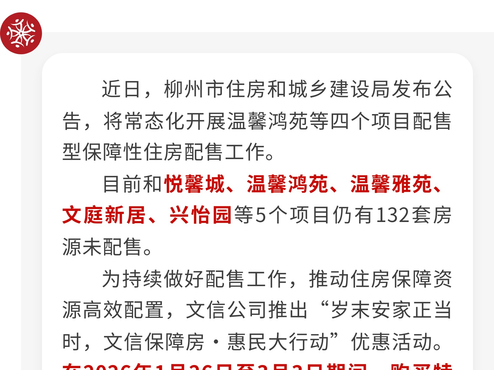 比回南天更猛!今起,申請柳州這些保障房,有2萬元補貼! 發(fā)布時間:2026年01月28日 13時來源:本站原創(chuàng)瀏覽:18 人次