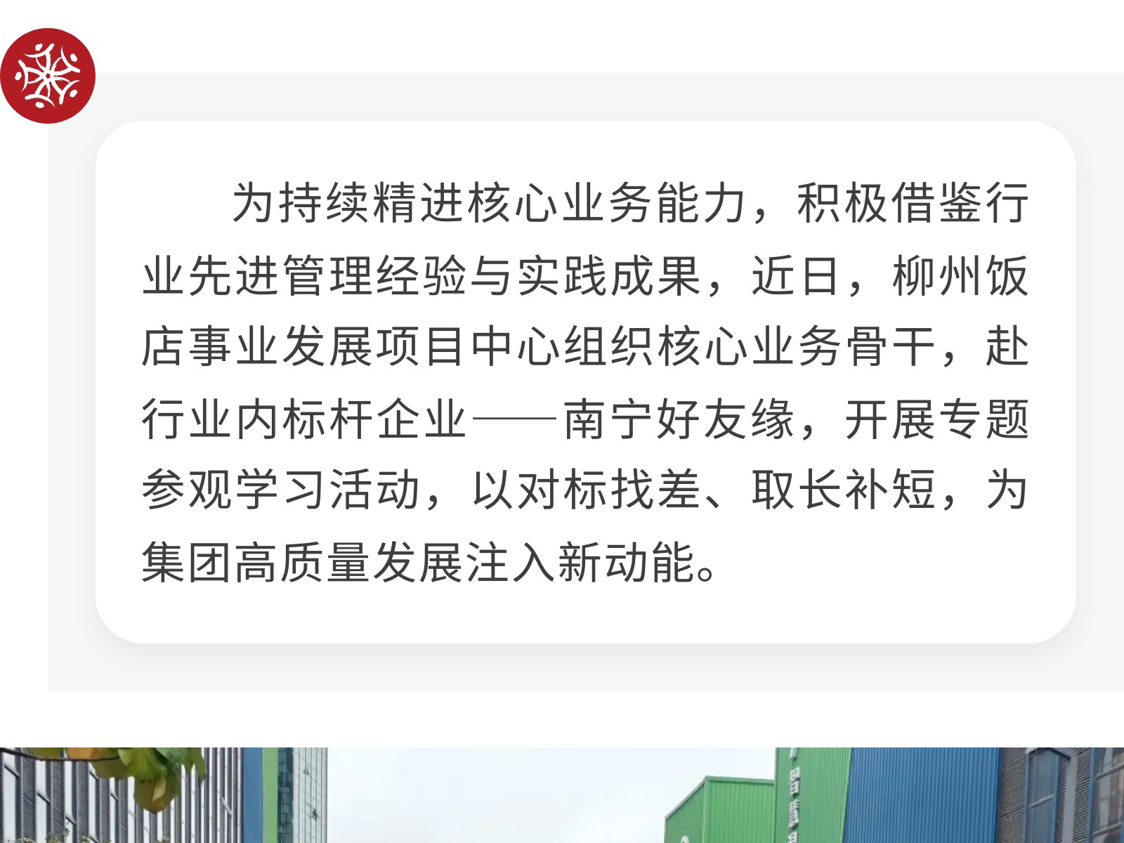 柳州飯店事業(yè)發(fā)展項(xiàng)目中心組織赴行業(yè)標(biāo)桿企業(yè)交流學(xué)習(xí) 發(fā)布時(shí)間:2026年02月03日 15時(shí)來源:本站原創(chuàng)瀏覽:18 人次
