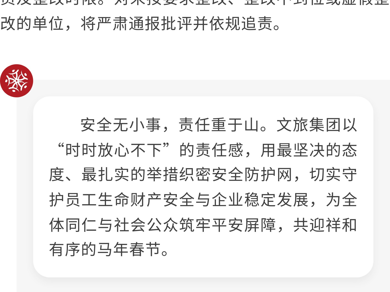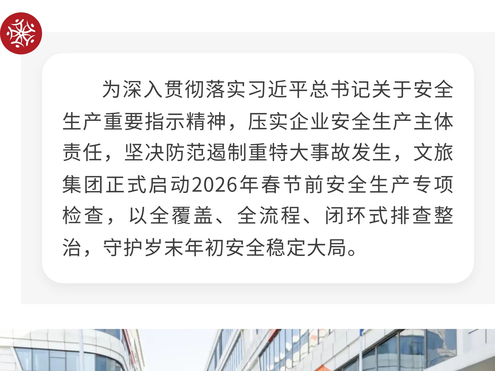 筑牢安全防線 護航馬年新春——文旅集團啟動2026年春節(jié)前安全生產(chǎn)專項檢查 發(fā)布時間:2026年02月03日 15時來源:本站原創(chuàng)瀏覽:16 人次